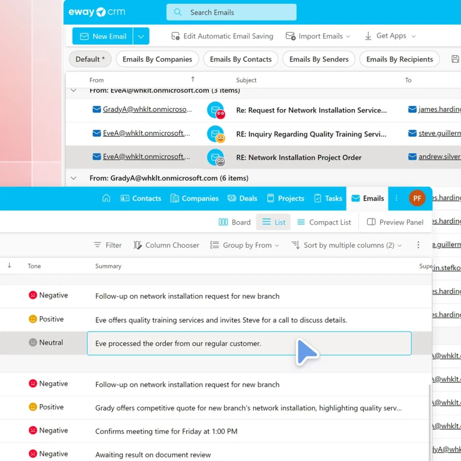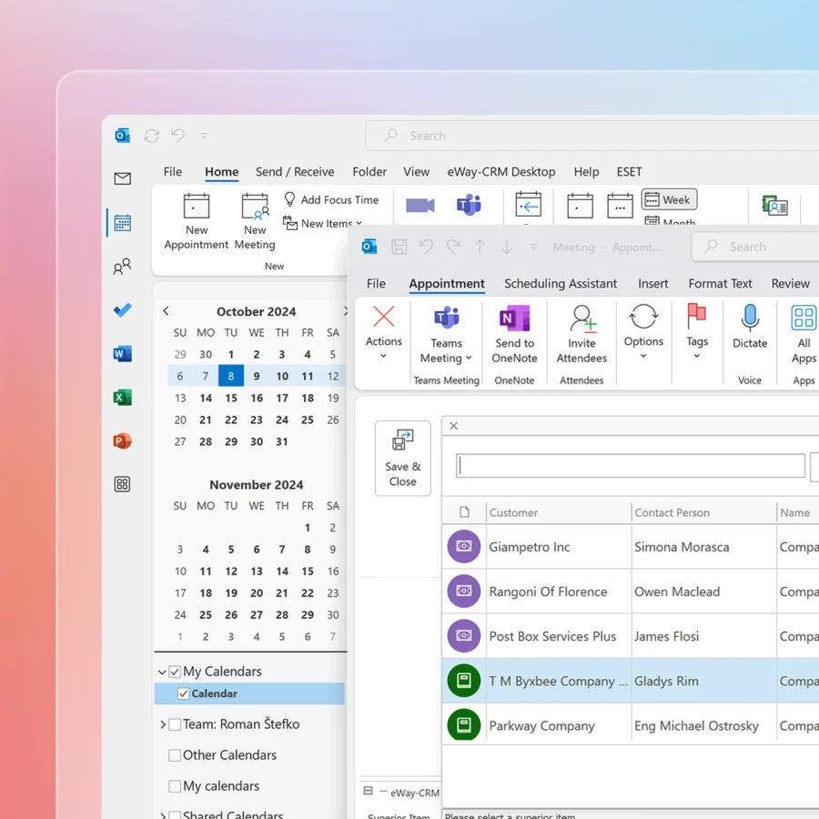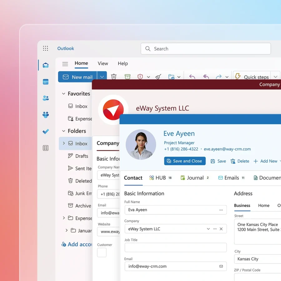 eWay-CRM ist direkt in Microsoft Outlook integriert. Es hilft Teams und Organisationen dabei, E-Mails, Kontakte, Besprechungen und Aufgaben zu teilen und zu verwalten.