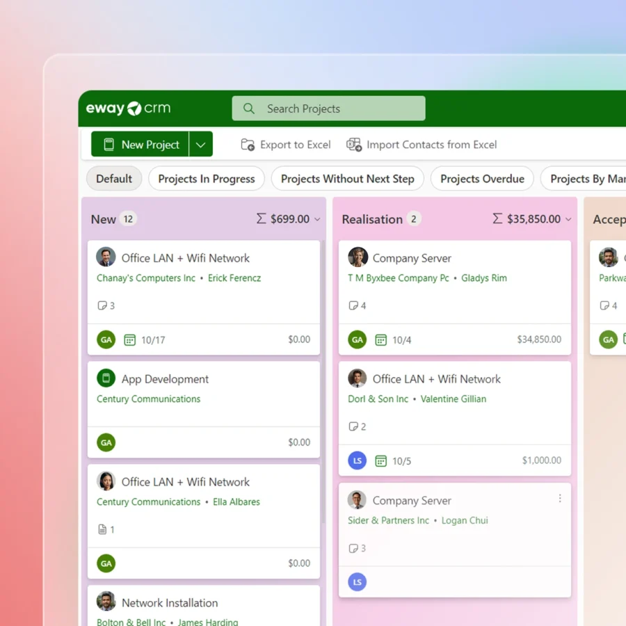Unsere CRM-Lösung verfügt über ein Projektmanagement-Modul. Wandeln Sie einfach einen Deal in ein Projekt um und weisen Sie es Ihrem Team zu. Ihr CRM-System in Outlook organisiert Ihre gesamte Kommunikation, damit Ihre Lieferanten wissen, wo sie anfangen müssen.