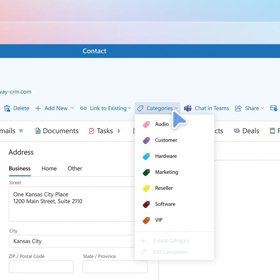 Fügen Sie benutzerdefinierte Felder hinzu, organisieren Sie Datensätze nach Typen und Kategorien und verfolgen Sie E-Mails, Notizen und Aufgaben.