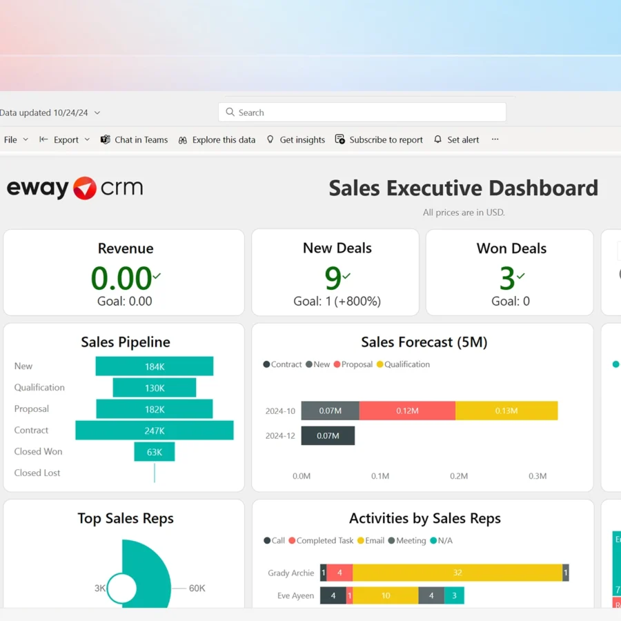 Wenn Sie einen benutzerdefinierten Bericht benötigen, haben wir den eWay-CRM-Konnektor für Power BI entwickelt. Damit können Sie schnell Daten abrufen und in ansprechende Berichte und Dashboards umwandeln.